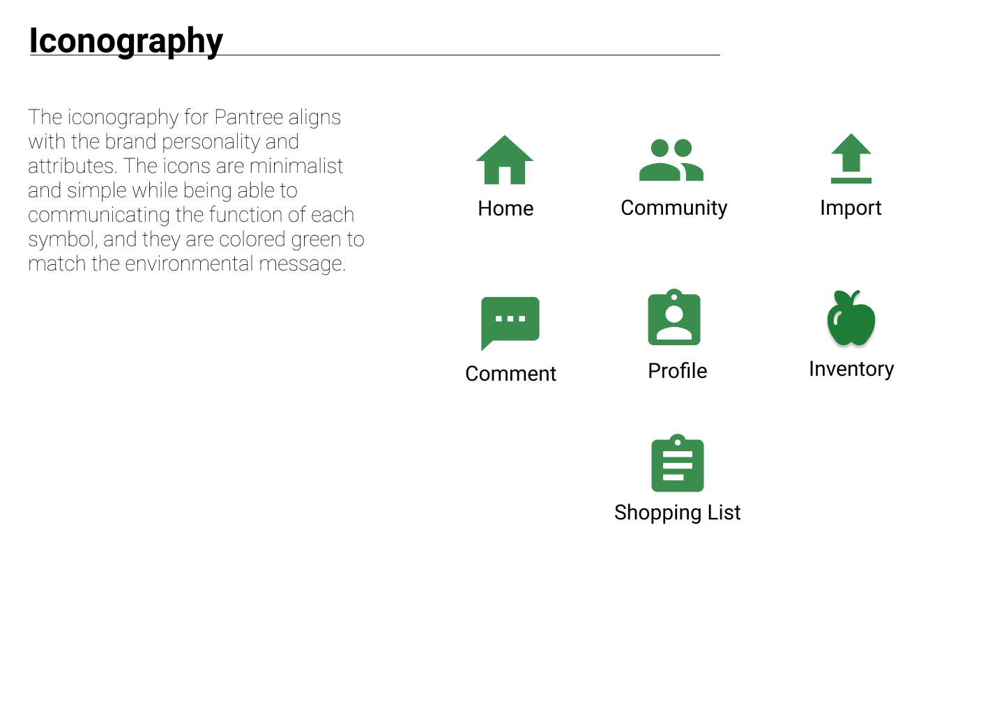 Key Takeaways: The imagery from the moodboard was able to guide the creation of the design system for Pantree. Overall, the system is simple but clean and welcoming.