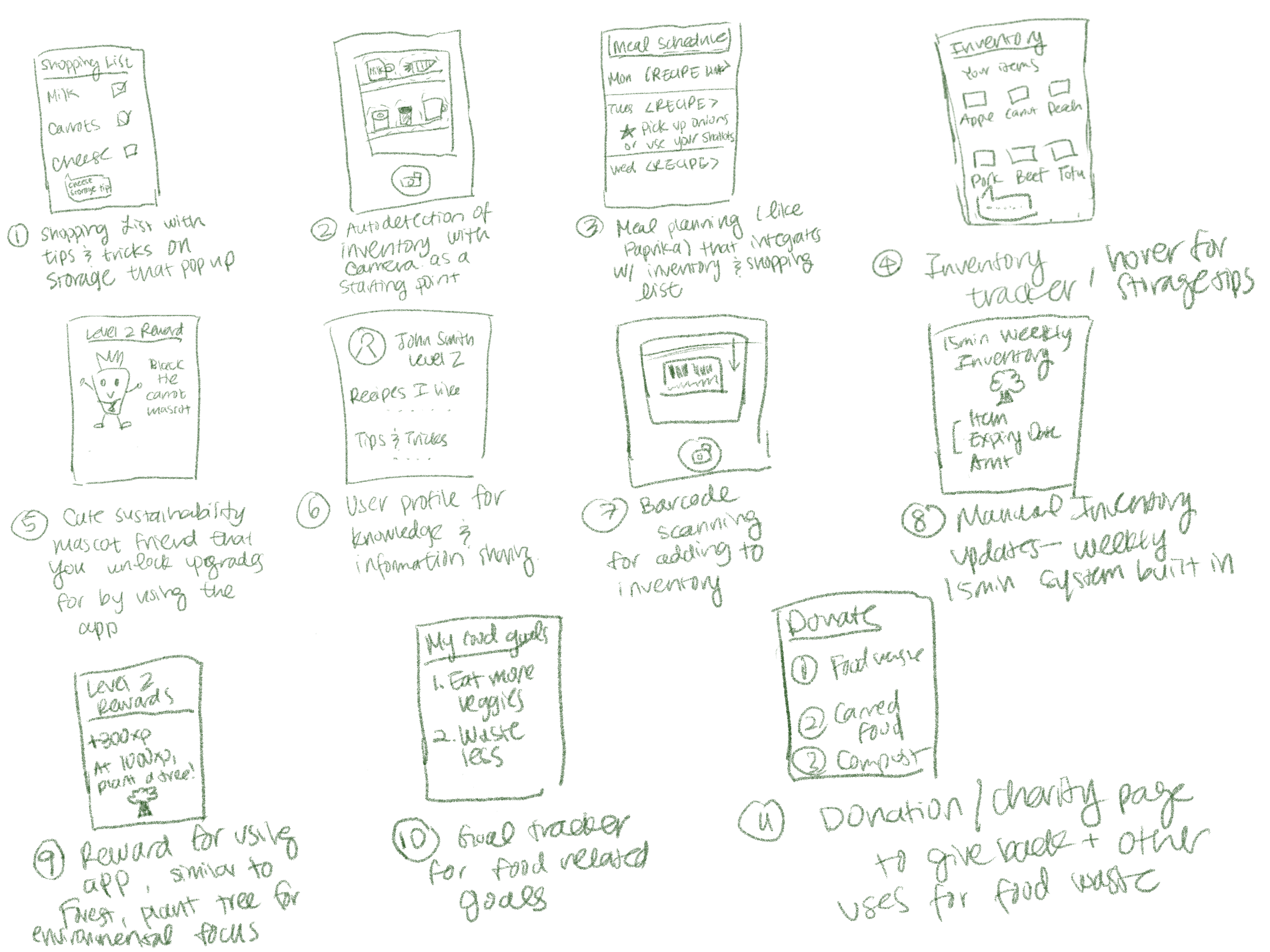 After my secondary research, I recruited interviewees to learn more about how they feel about household food waste and their home cooking and storage habits.