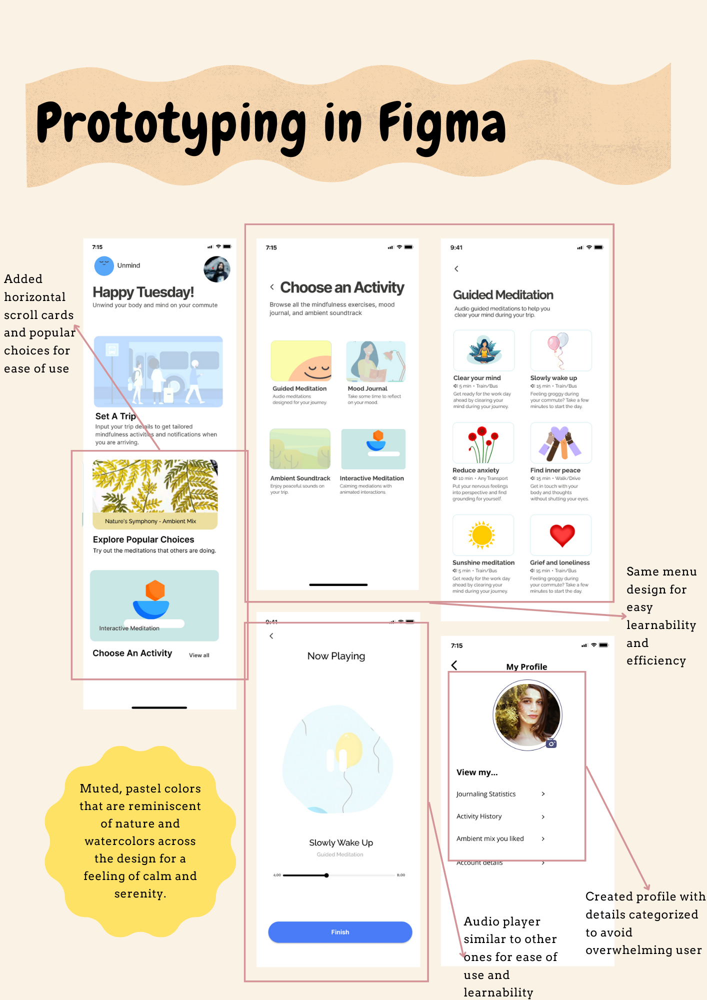 - Refined design process: I collaborated with a new team to design the Unmind app, where I optimized my workflow to save time and deliver more professional prototypes.